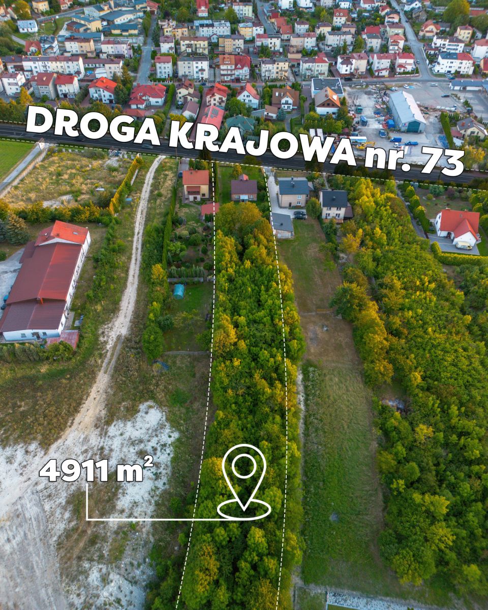 Działka położona jest przy ul. Objazdowej, bezpośrednio przy drodze krajowej nr 73 Tarnów - Kielce, a także w niedalekiej odległości od centrum, ok 500 metrów od Rynku.